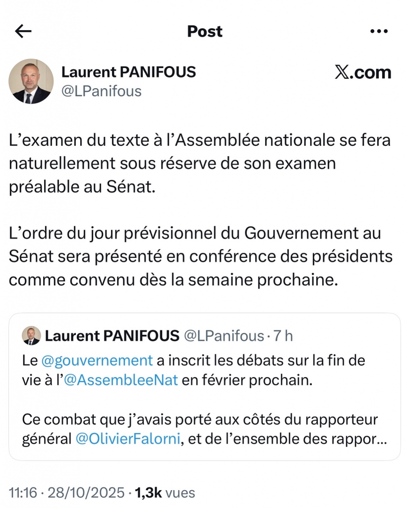 Merci monsieur le ministre L. Panifous de cette confirmation de reprise des discussions des projets sur la fin de vie !