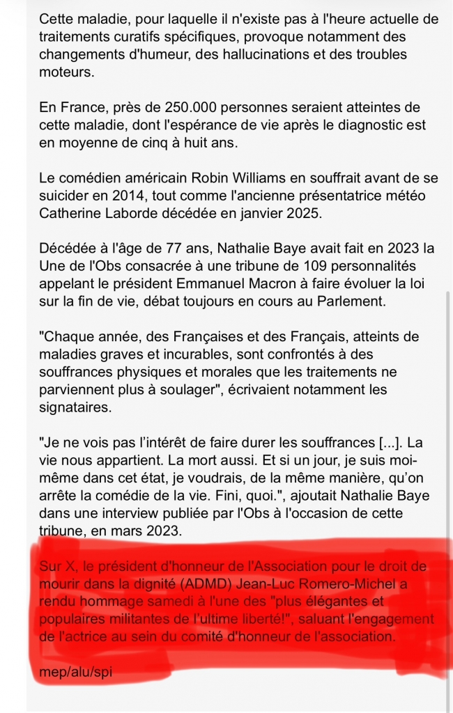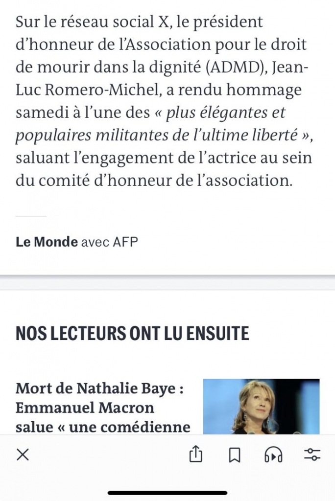 Je n’oublie pas la femme engagée qu’elle fut en rejoignant le comité d’honneur de l’@Admd-france et étant l’une des investigatrices du manifeste des 109 de @Le_NouvelObs rappelant que notre mort doit nous appartenir !