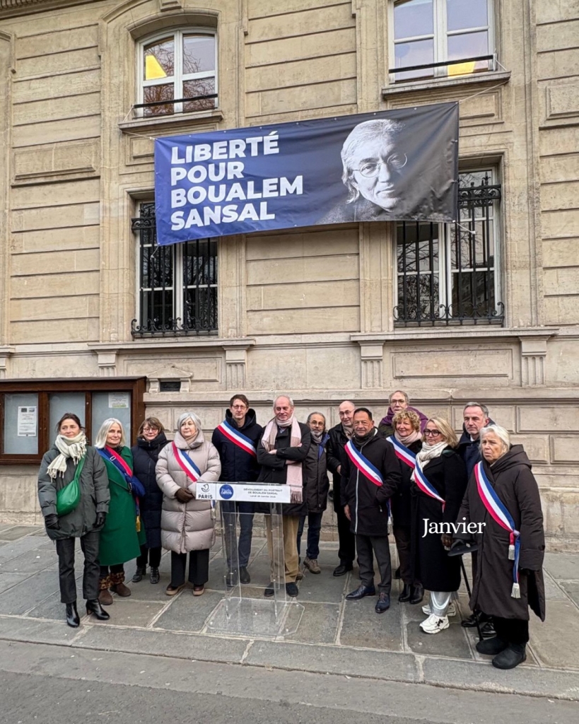 Dévoilement du portrait de Boualem Sansal sur la façade de la Mairie de Paris Centre.